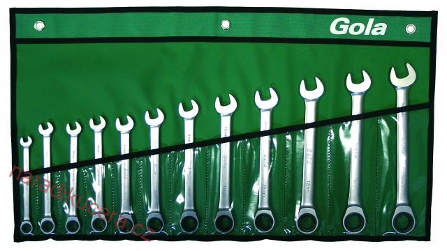 Sada očkoplochých ráčnových klíčů značky Gola.