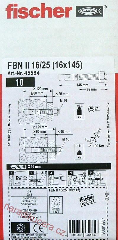 - Fischer ocelová kotva FBN II 16/25/145 č. 45564