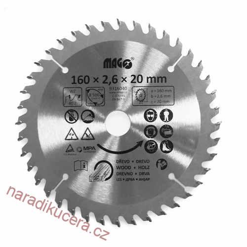 - Pilový kotouč Magg 160x2,6x20 40z č.9316040 sš.