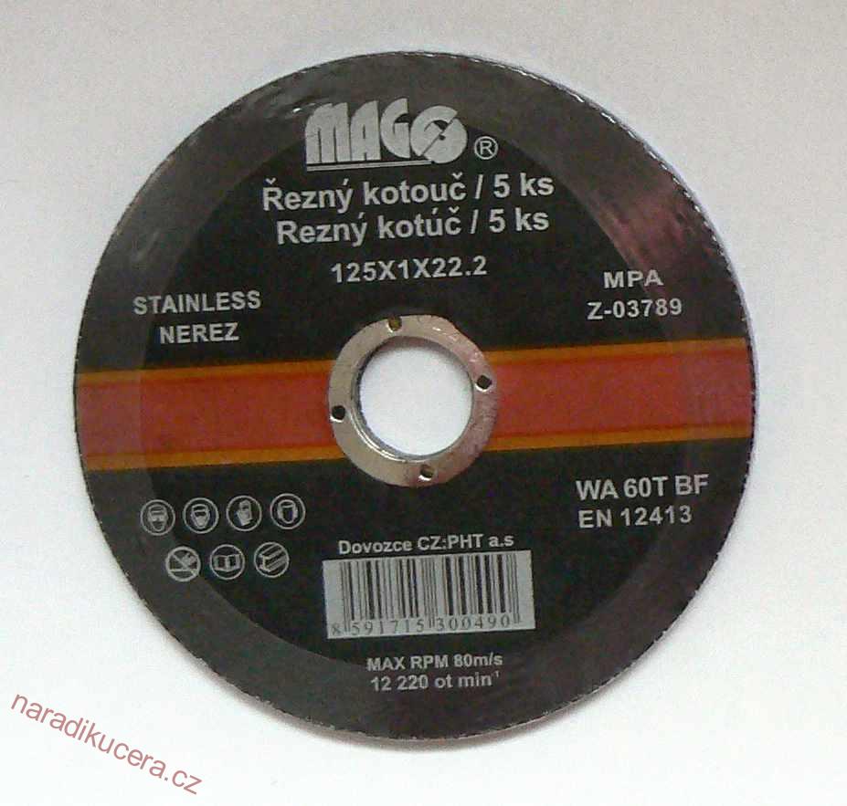 Řezný kotouč nerez 125/1,0/22,2 Magg RN12510Skladem13 Kč/ ks11 Kč bez DPH