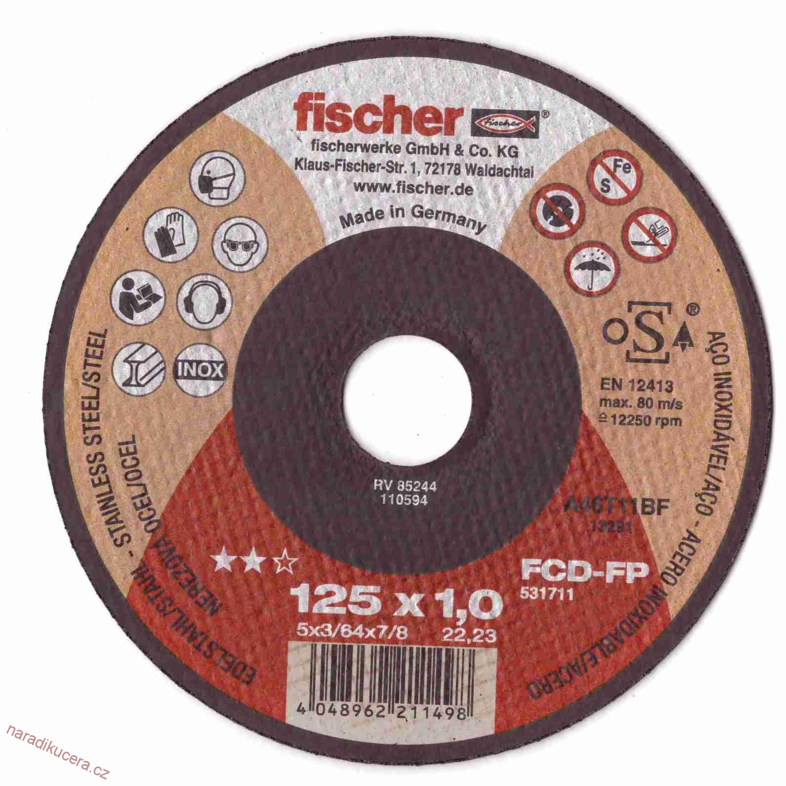 - Řezný kotouč Fischer na ocel a nerez 125x1,0x22,2 č. 531711