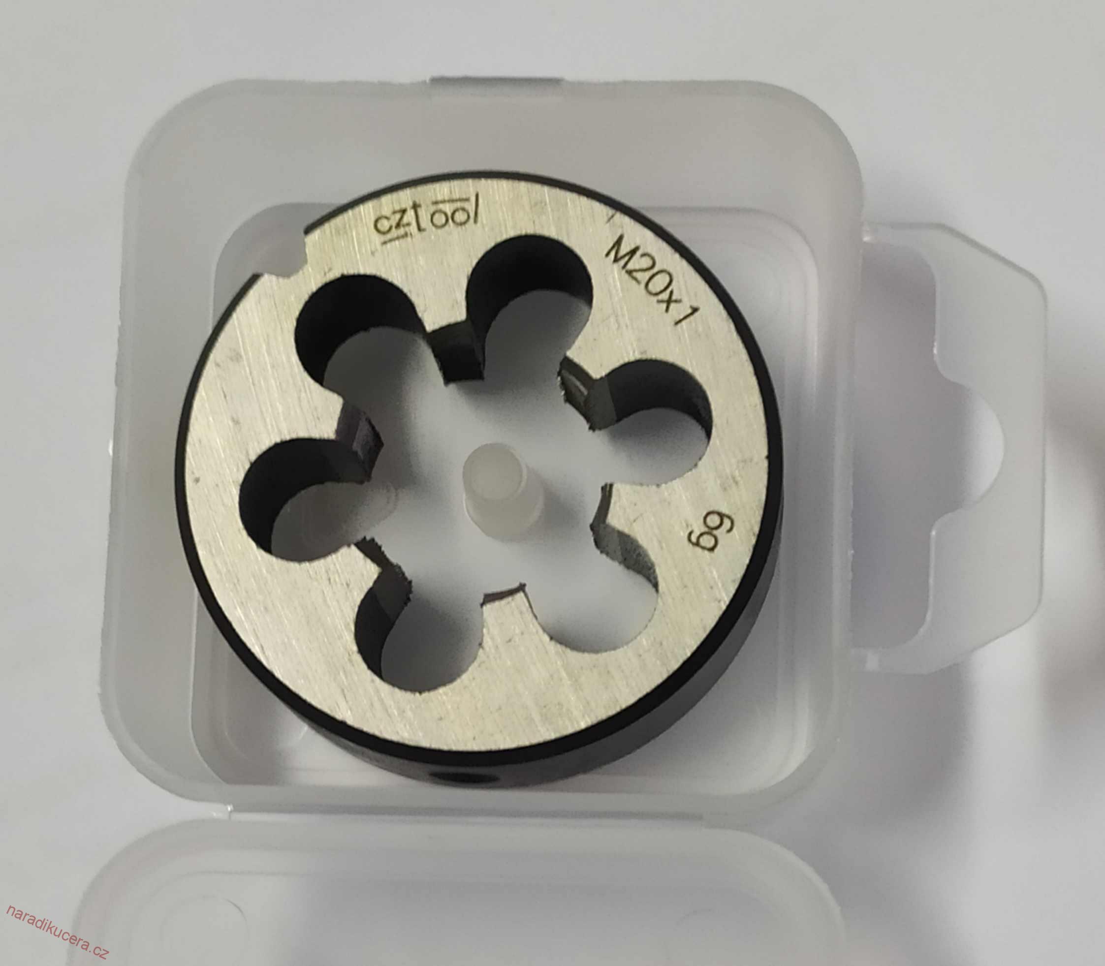 Závitová kruhová čelist (ZKC) - závitořezné očko. Metrický závit, z nástrojové oceli NO. Pro běžné řezání a pročišťování závitů.