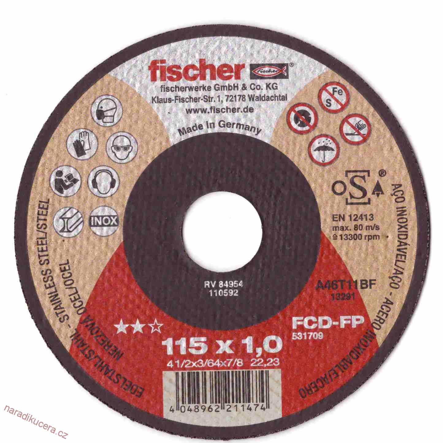 - Řezný kotouč Fischer na ocel a nerez 115x1,5x22,2 č. 531710